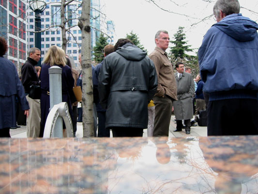 I sometimes describe this as an "image blog"; it is Bill Eadie's daily photo diary, which I started over 20 years ago. There are some "stories" behind some of these pictures, as you can imagine; (e.g. Dec 2, 2002 - smoke alarm goes off in my neighbour's house, or Feb 24, 2003 - first day of work at a new client); others simply illustrate my daily routine in Toronto, Canada. I have to admit that the idea wasn't original. I started my daily picture diary immediately after reading a newspaper article describing jeffharris.org (archived). I usually have my camera with me, watching out for good shots. Though some days the picture is just "me, eating (or drinking coffee) again". Forces me to try and accomplish "something" every day.